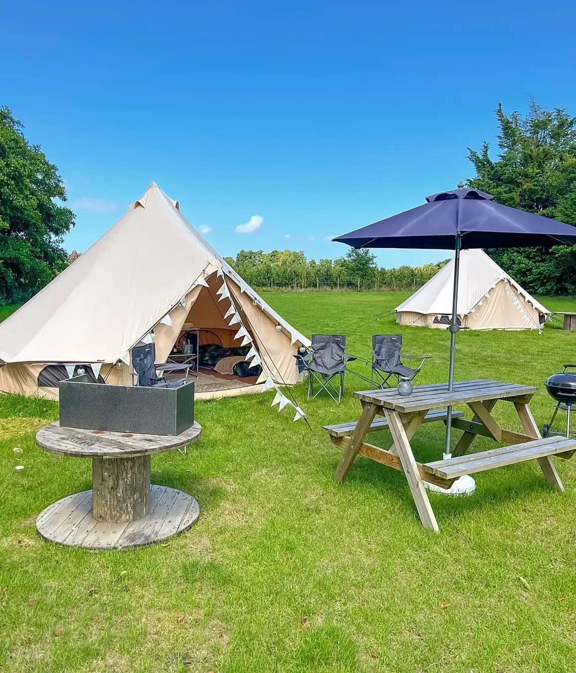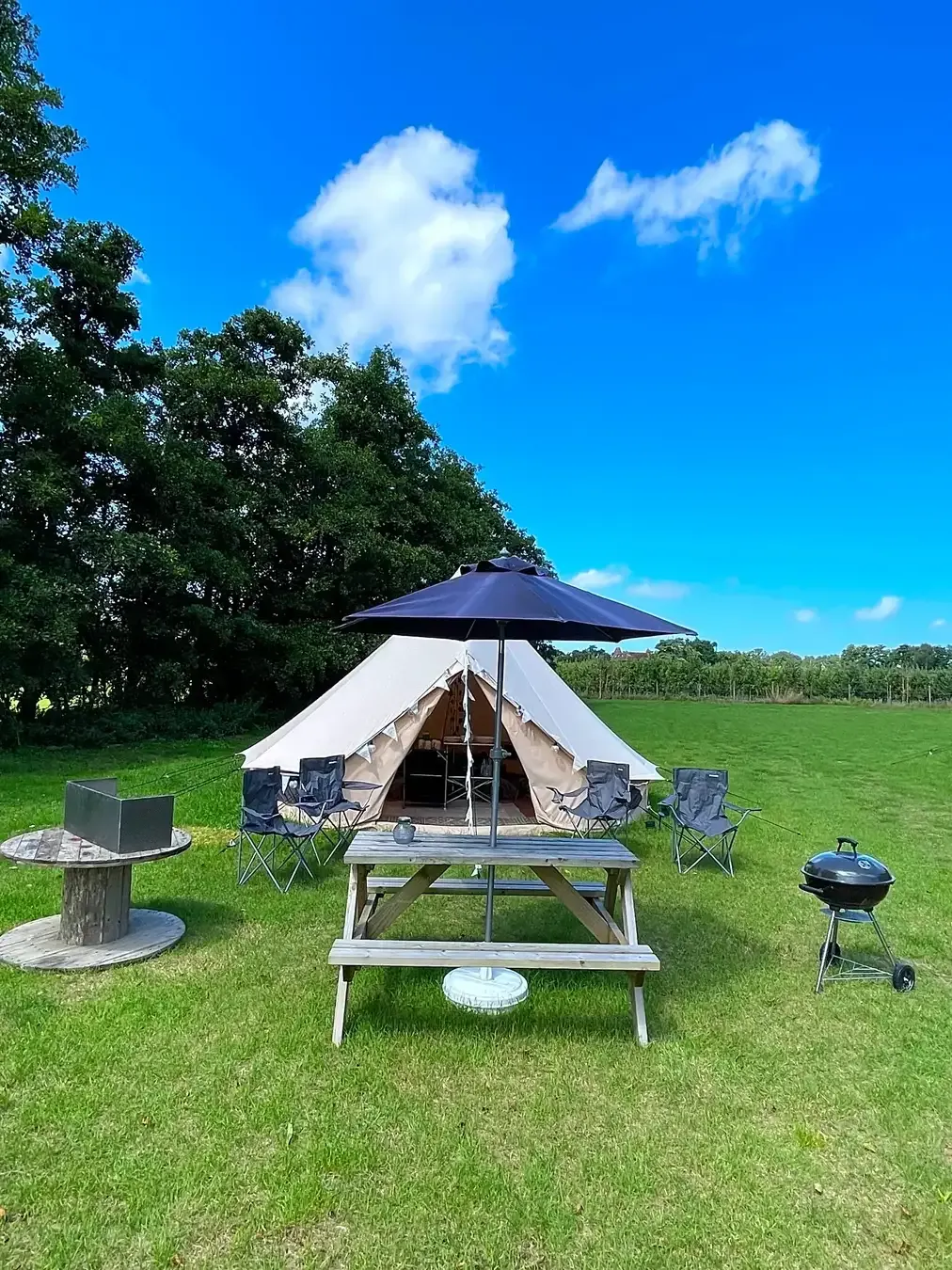 Enjoy extra-spacious Deluxe Bell Tent glamping in Kent, perfect for families who want comfort, room to spread out, and an easy, stress-free stay in nature.